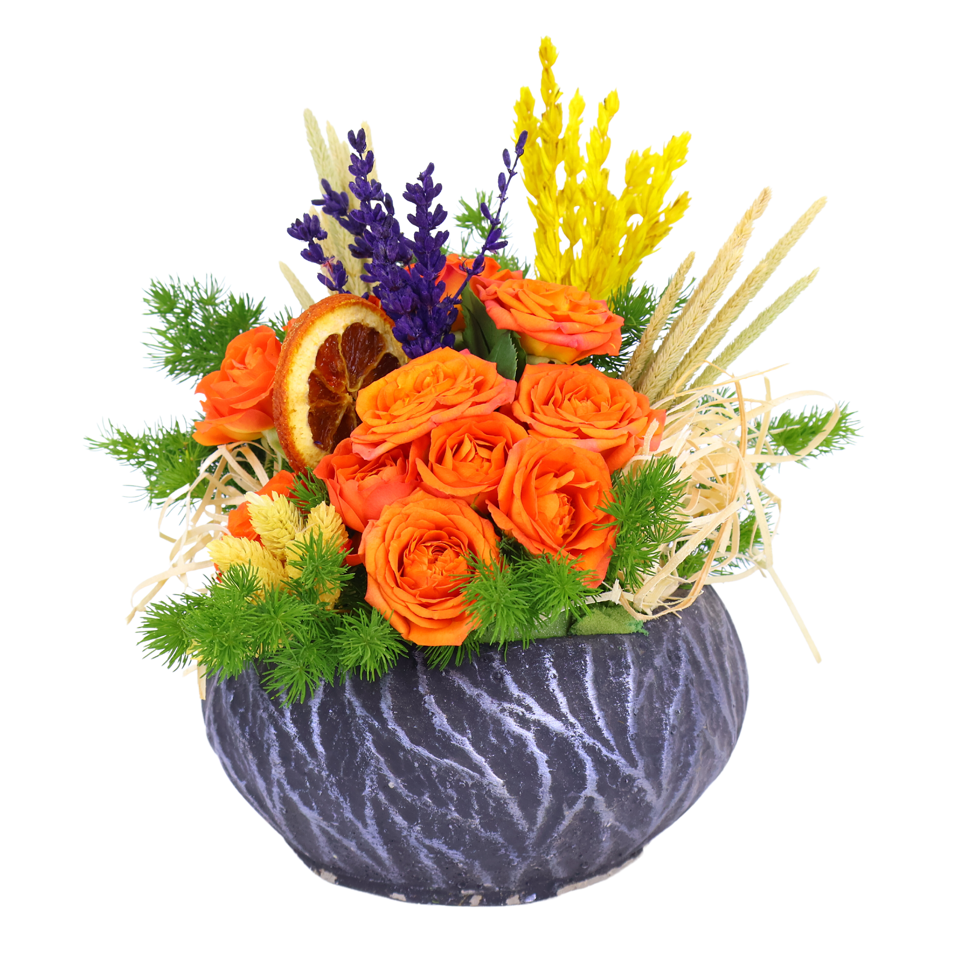 Siyah seramik vazo içerisinde sünger (oasis) bulunmaktadır. Islak sünger içine saplı olduğundan sünger’in ıslaklık derecesi kontrol edilmelidir. Doğrudan güneş ışığı almaması çiçek ömrünü uzatır. Oda sıcaklığında ofisler, evler, işyerleri için çok uygundur.