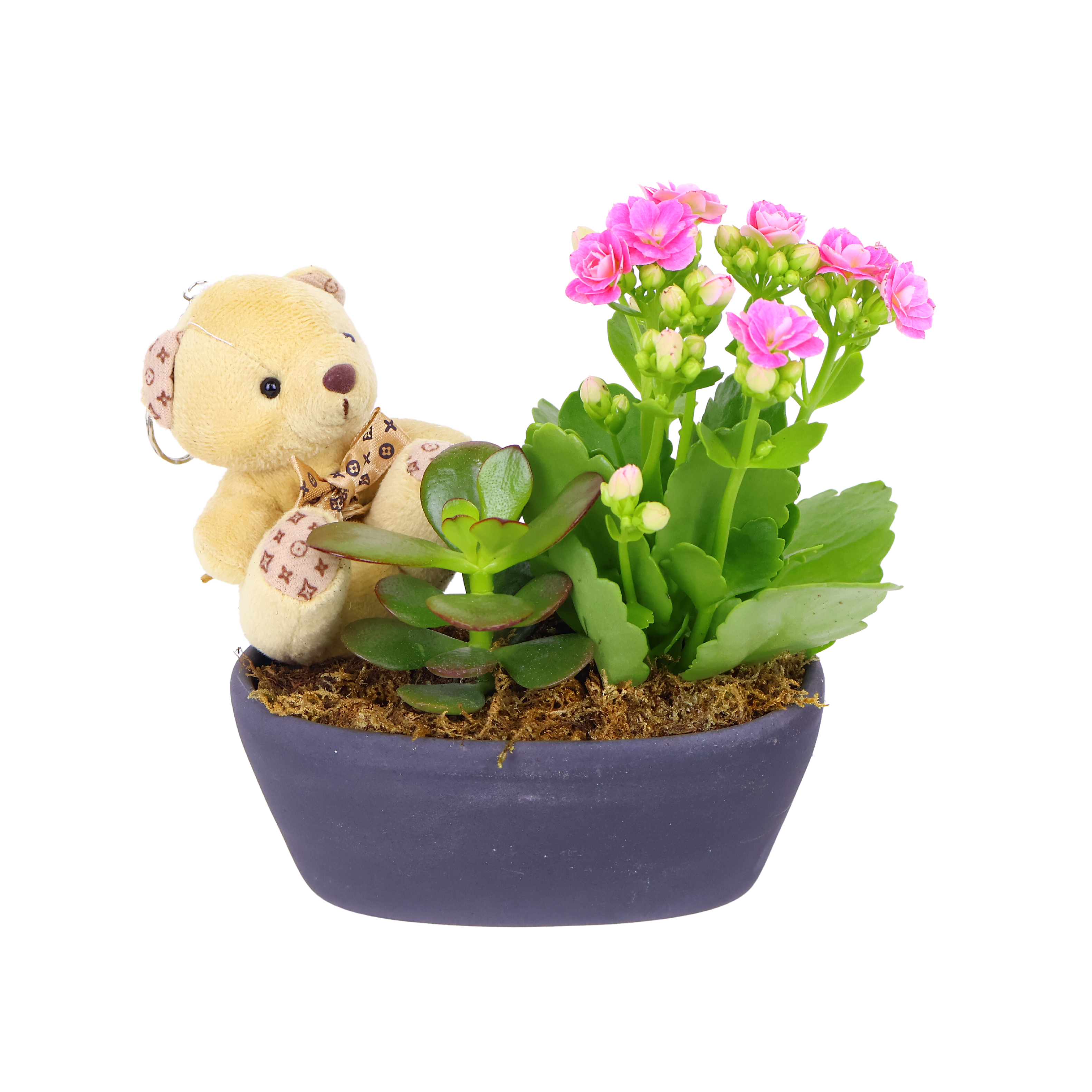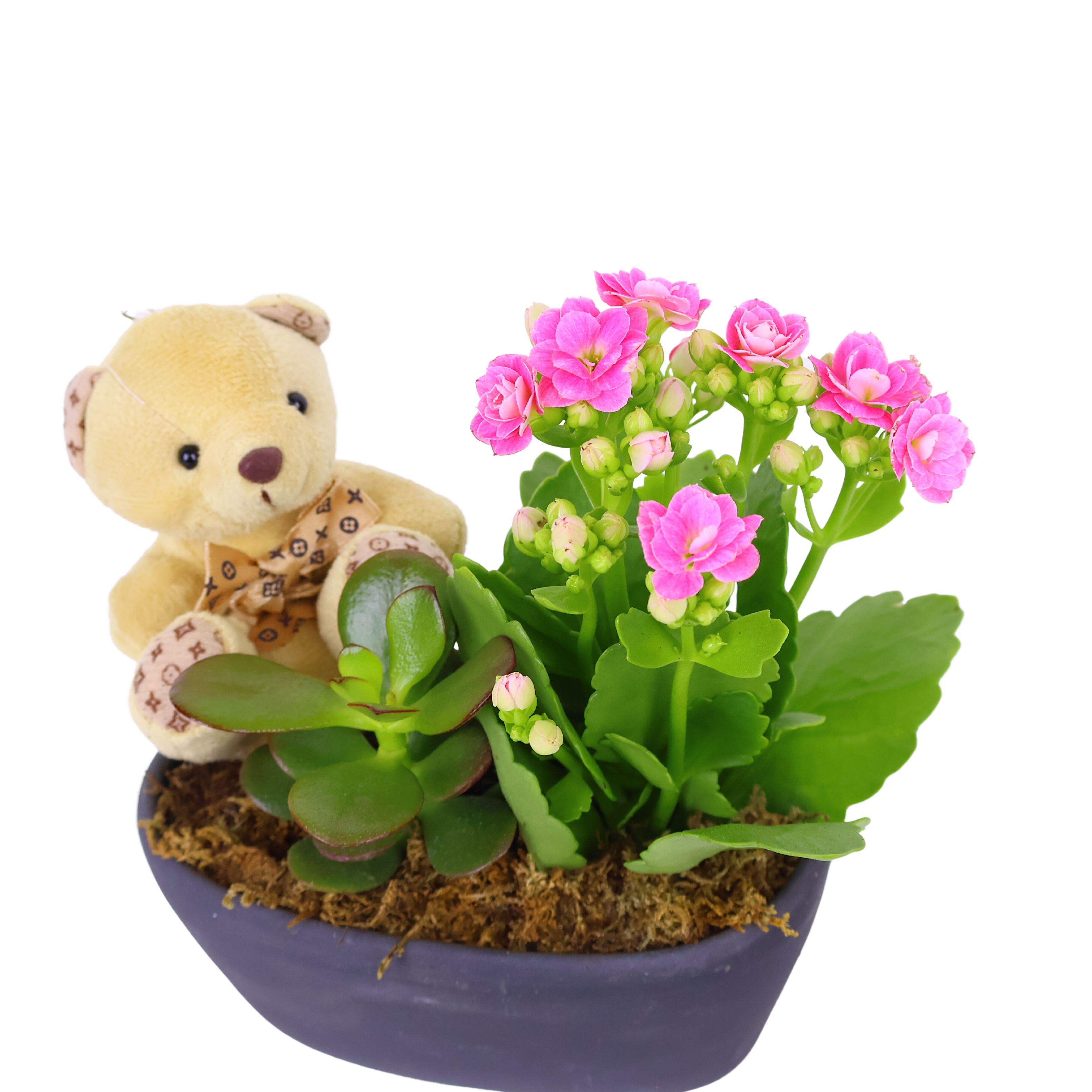 Pink & Bear, aranjmanımız için dikkat edilmesi gereken direk güneş ışığı almaması,sık sık bitkilerin su ihtiyacının kontrol edilmesi gerekir. İçeriğindeki kalanchoe bitkisinin 4 gün aralıklarla su ihtiyacının karşılanması diğer sukulent grubunda olan çiçeklerin 5 gün aralıklarla toprağının su yardımı ile nemlendirilmesi gerekmektedir.