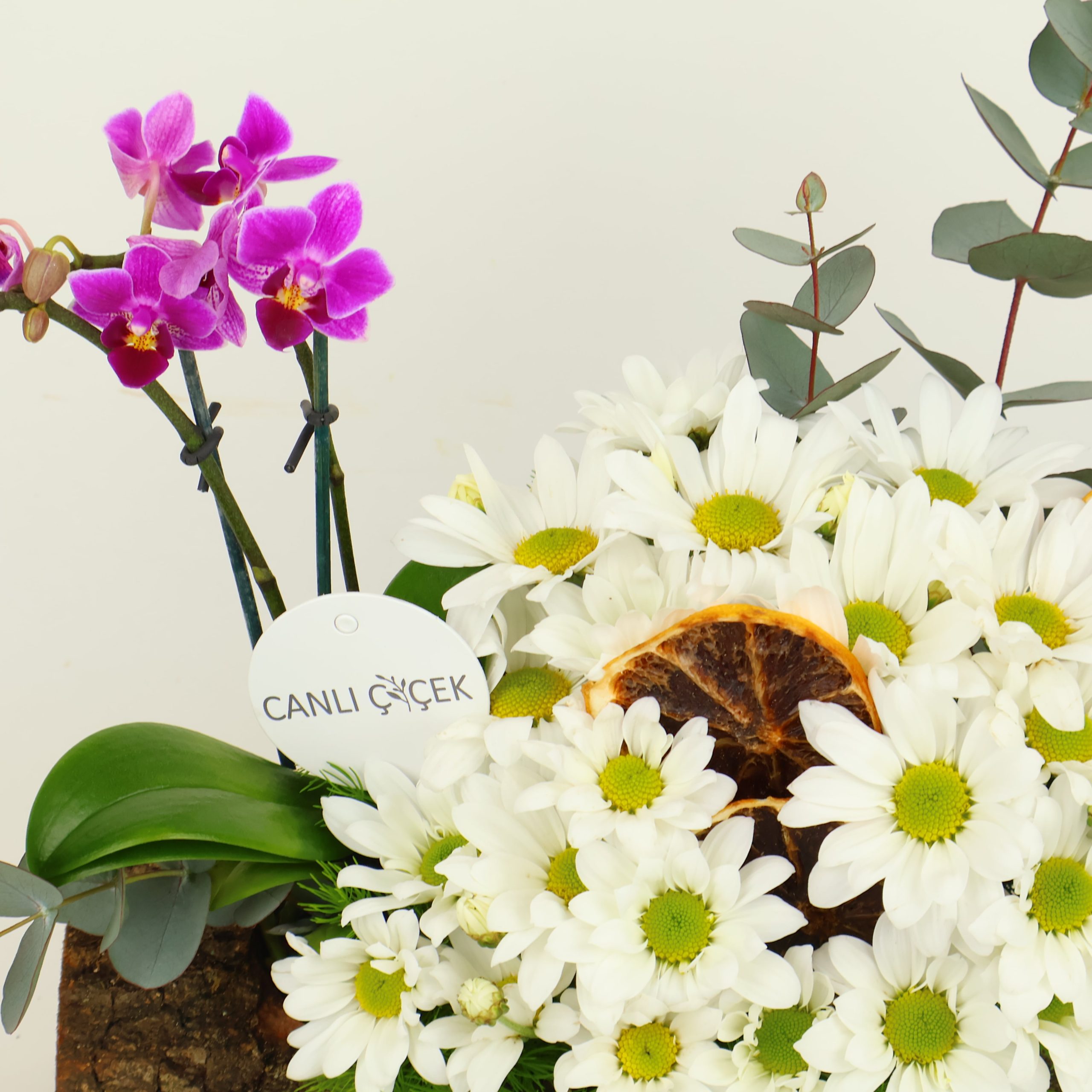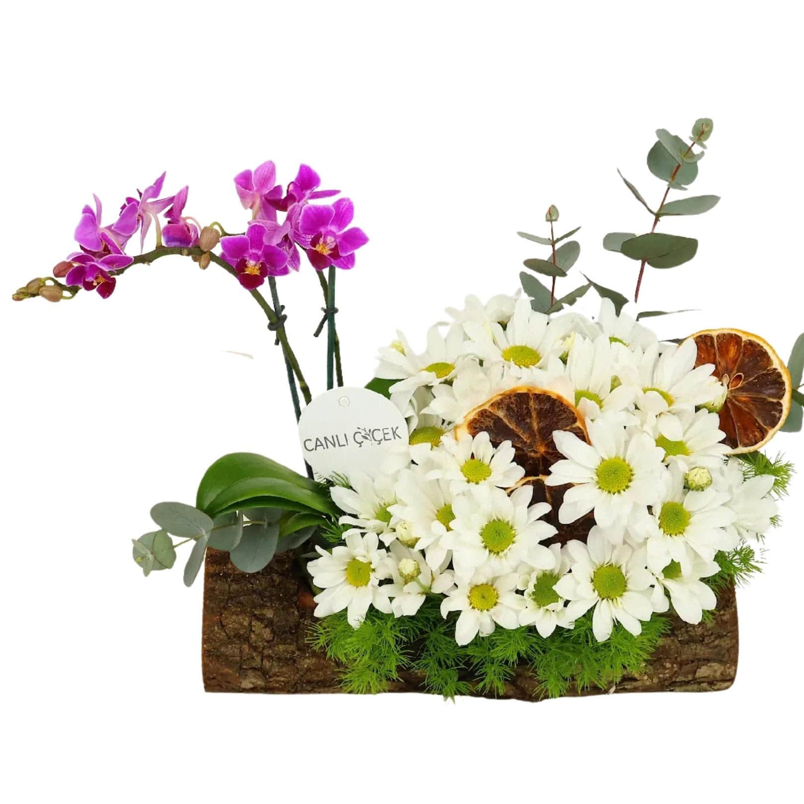 Kütükte Mini Orkide & Papatya, Floral Masters ekibimiz tarafından sevdiklerinizi mutlu etmek için özenle tasarlanır.