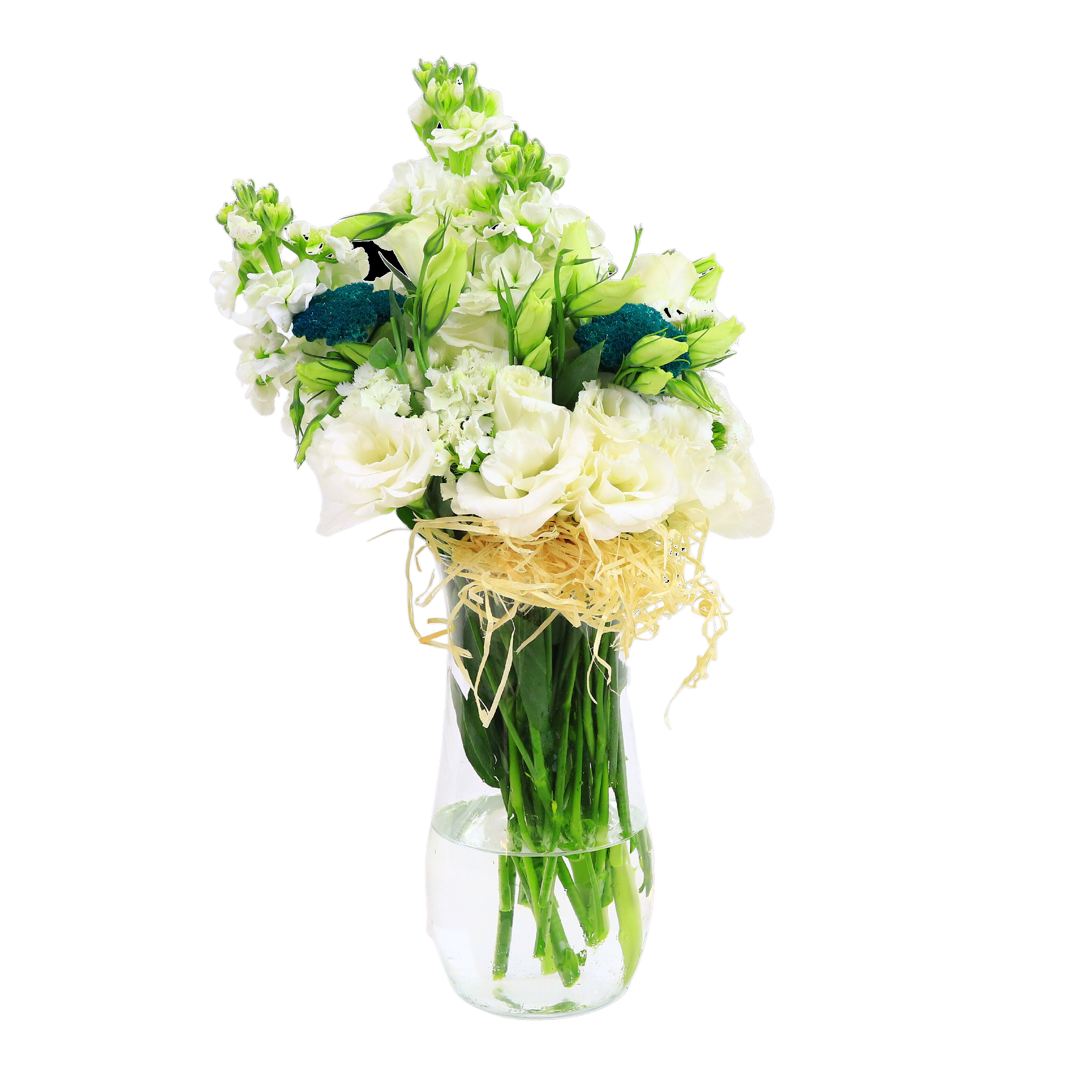 White story arrangement,ürünümüzün su rengine dikkat edilmesi gerekir. Cam vazo içerisindeki çiçeklerin saplarından dolayı 3 günden önce su renginde bir bulantı olursa suyu değiştirilmelidir. Vazosu içerisine buzlu su veya soğuk su ilave yapılabilir.Ortam olarak kesinlikle direk güneş almaması önemlidir.Sıcak ortamda solmalar olduğunu gözlemler iseniz saplarını keserek yenilenmiş su içerisine koymanız yeterli olacağını düşünmekteyiz.